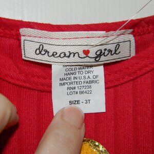 Dream Girl Christmas dress with gingerbread on front. This is a comfy, easy, slip on dress. Super cute and perfect for wearing to school. Casual knit so it's still comfy to wear while playing, but still festive enough for the Christmas season. New without tags.