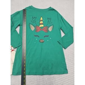 This Christmas dress for girls in size XS (4-5 years) features a festive multicolor design with both long and short sleeves, perfect for the holiday season. The knee-length shirt dress style adds a fun and playful touch to the Christmas theme, making it a cute choice for young girls to wear during the festive season.