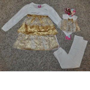 *Christmas Dress, Leggings 6/6X Gold White What A Doll 18" Dress 3 Pc Set Girls