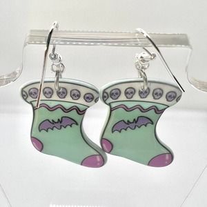 Christmas Earrings - Pastel Blue Halloween Themed Christmas Stocking Earrings