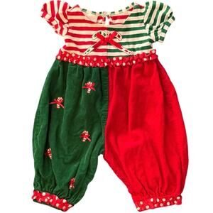 Christmas Embroidered Candy Canes One Piece Bonnie Baby Outfit Size 3-6 Months