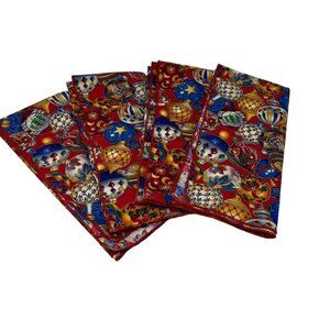 Christmas Fabric Napkins Set of 4 Bright Blue Red Orange Ornaments