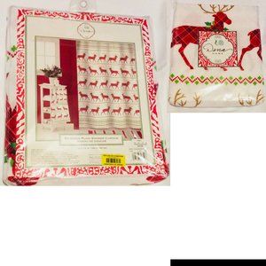 Christmas Fabric Shower Curtain Reindeer Plaid