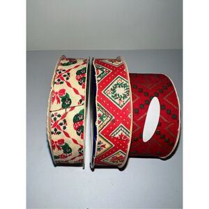 Christmas Fabric Ribbon Set of 3-DECORATOR-Gift Tie Bows USA-Rolly Look Unused