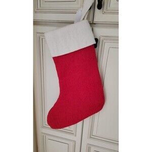 Red & White Christmas Stocking with Embroidered Name in Green: SANDRA New 19" from Cuff to Toe.