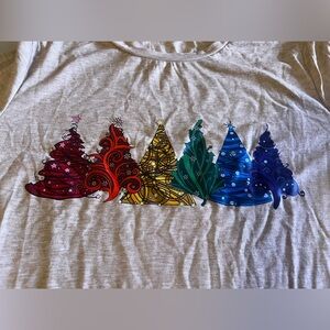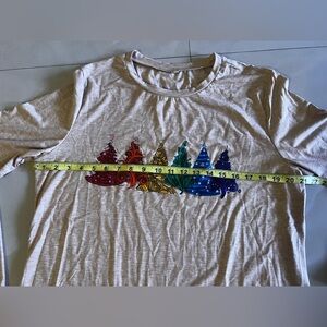 Questions? Leave a comment below! Christmas Festive Round Neck Stretch Pull-over Top XXL beige Christmas treeprint