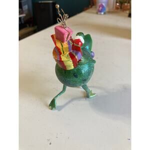 Add some holiday cheer with this adorable Christmas frog figure! This little guy is all decked out for the season, carrying a stack of presents. Perfect for adding a touch of whimsy to your holiday decor. Whether you're a collector of unique holiday decorations or simply looking for something cute to brighten up your home, this frog figure is sure to bring a smile to your face.
