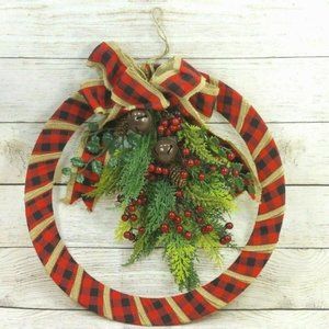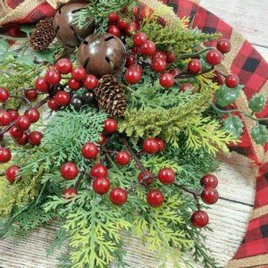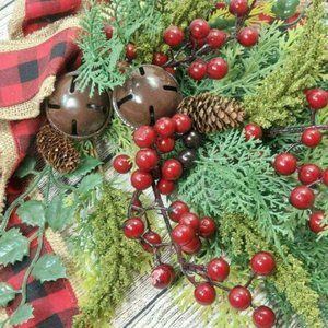 Christmas Front Door Wreath Plastic Cascade Red Berries Bells Holiday Décor Gift