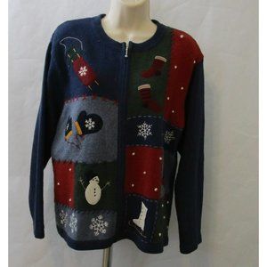 Christmas Full Zip Sweater Sz Large Snowman Snowflakes Croft & Barrow Colorblock