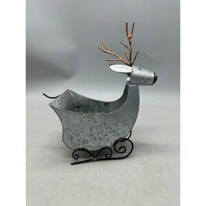 Christmas Galvanized Metal Reindeer Flowerpot Decor Copper Antlers Metal READ