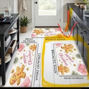 Festive kitchen rugs featuring gingerbread and Merry Christmas design. Perfect for holiday decor.