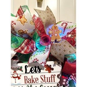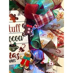 Christmas Gingerbread Man Holiday Ribbon Door Wreath Handmade 22 ins LED W5