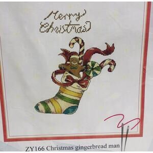 Christmas Gingerbread Man Stocking Pre-Printed Cross Stitch Kit Udervtue. Condition is "New". Shipped with USPS First Class.