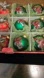 These glass ornaments by California Fruit Exchange come in the original box, and each ornament is nestled in green paper just like fruit is shipped. Six are green with red pickup and six red with snowflakes with gold metal hangers. These ornaments will look great on your tree, all in good condition. One piece of green tissue has been replaced with white tissue.