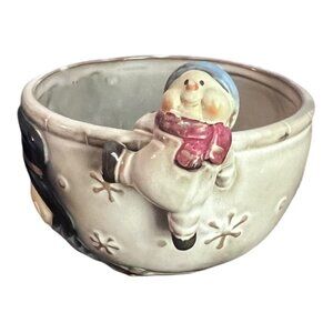 Christmas Glazed Ceramic Snowman Bowl with a 3D Snowman Approx. 4.25" Tall X 5" Dia.