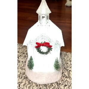 Christmas Glitter Snow Globe White Snowy Pines 12" Church LED Battery Operated
