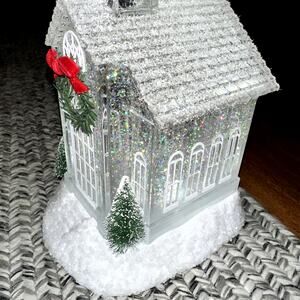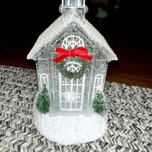Celebrate the magic of the holidays with this stunning 12-inch Christmas Glitter Snow Globe, featuring a white snowy church surrounded by pine trees and a flurry of sparkling glitter. This beautiful piece lights up with LED illumination, creating a cozy, wintry glow that enhances any holiday décor.