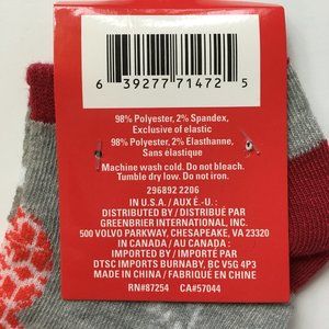 Fun Christmas holiday gnome socks. Gray socks with white snowflakes and a cute gnome/elf with a red and white hat and a fuzzy white beard. Perfect for winter! Designed to fit womens shoe sizes 5-9. New with tags! Please see photos for details.