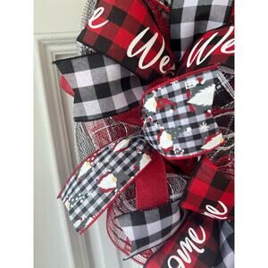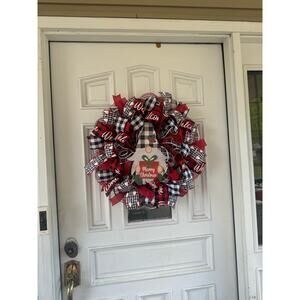 • Materials: Premium deco mesh, burlap, buffalo plaid, and Christmas-themed ribbons with an adorable gnome centerpiece.