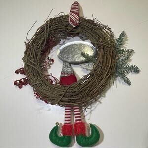 Christmas Grapevine Wreath Peppermint Gnome Let It Snow Handcrafted