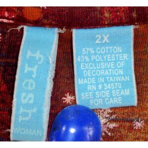 Christmas Graphic Red Snowflake Print Top Fresh Women 2X Fresh Cotton/Polyester