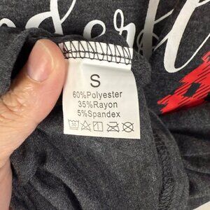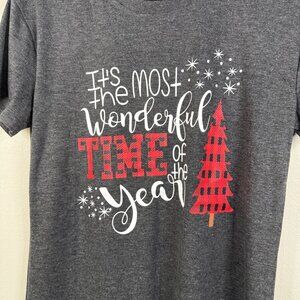 Christmas Graphic T-Shirt Charcoal Gray With Red Plaid Tree Print Size S