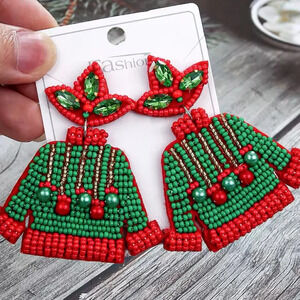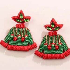 Christmas Green Beaded Earrings