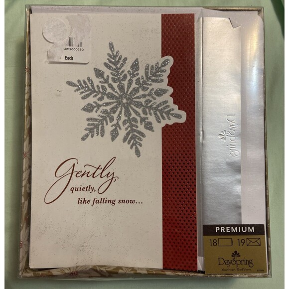 Christmas Greeting 18 Card Pack Glittery Snowflake DaySpring 8”by 5” Scripture