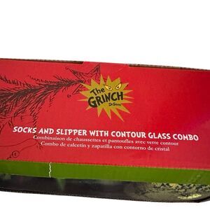 Christmas Grinch Socks Slippers Wine Glasses gift Set BIOWORLD NEW