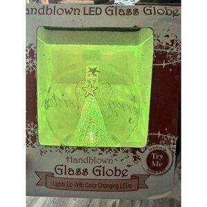 Christmas Hand Blown Glass Angel Nativity Snow Globe Color Change LED Lights NEW