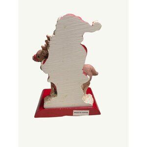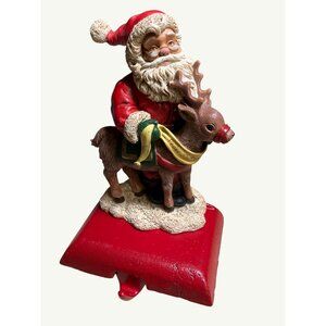Christmas Handpainted Vintage Stocking Hanger Santa W/Reindeer Adjustable
