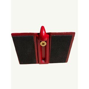 --Red base shows slight wear and paint chipping.