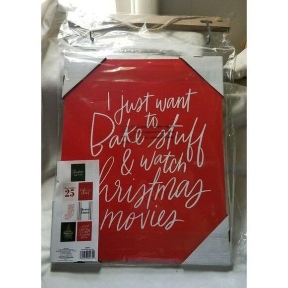 Comes with the wooden hanger and 7 different Christmas saying signs.