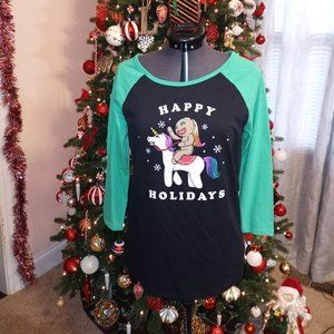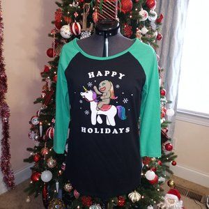 Christmas Happy Holidays Gingerbread Girl Unicorn T-Shirt (Size: Medium)