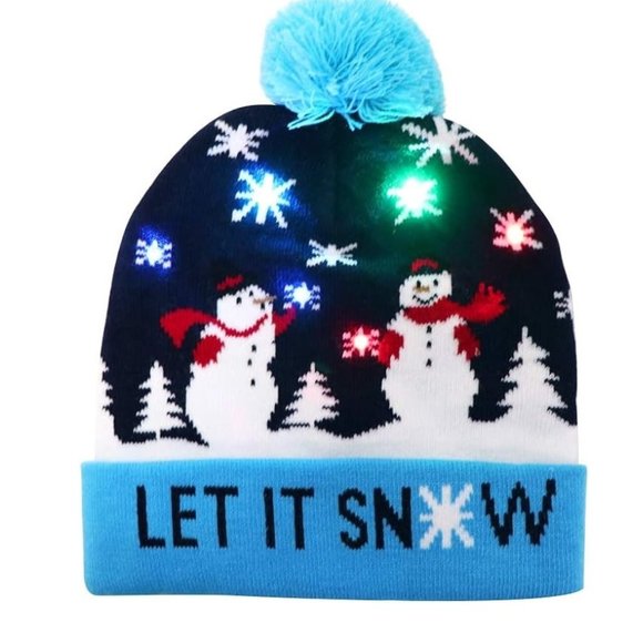 Christmas Hat Knitted Woolen with LED lights Colorful Glow Hat One Size