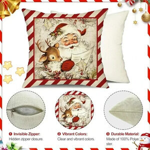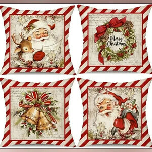 Set Of 4 Absolutely Stunning New With Tags Santa Vintage Style Pillow Covers Bedroom Living Room Office Gift Party Festival Holiday Christmas Gift