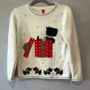 Christmas Holiday Dog in Present ugly sweat girls size large 12 - 14. Can also be a women’s small. Preowned.