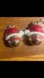Santa Hat Earrings: A pair of earrings shaped like classic Santa hats, complete with red glitter enamel, white trim, and a white pompom. Uniquely, the faces beneath the hats are depicted with heart-shaped "eyes" in a gold tone, adding a whimsical touch.