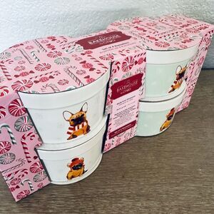NWT set of 4 coordinating Frenchie dog / French Bulldog graphic ceramic ramekins set.