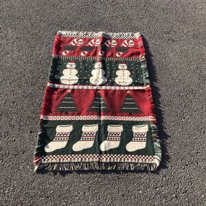 Christmas Holiday Fringed Tapestry Throw Lap Blanket Textile Wall Hanging 28x45