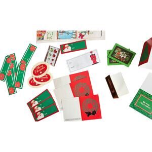 Variety of gift tags. Most are vintage. Some have sticky seals on the back but I’m unsure if those will still work. Some are out of magazines. Colors may vary due to lighting and screen settings.