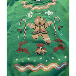 Christmas Holiday Green Sweatshirt Size SMALL Gingerbread Man Candy Cane XMAS