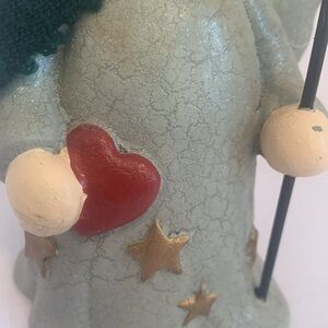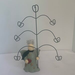 Pre-owned rustic resin vintage look angel with a wire tree intended to display greeting cards. Could also hold pictures or display ornaments. Just under 13 inches tall.