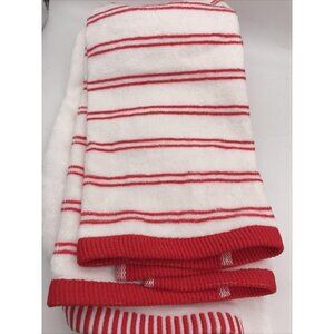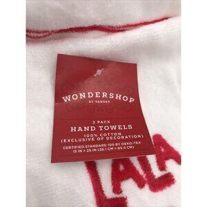 Christmas Holiday Hand Towel 2 Set White With Red Stripes Wondershop 100% Cotton.