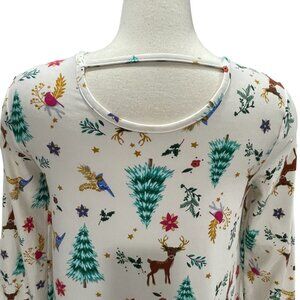 Celebrate the season with this adorable Wonder Nation girls' long-sleeve holiday top. This shirt features a playful all-over print with festive elements such as Christmas trees, reindeer, and bright seasonal flowers, making it perfect for holiday gatherings and winter festivities. Soft and comfortable, this top is made for enjoying the holiday cheer while staying cozy.