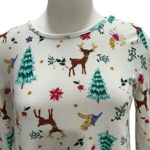 Christmas Holiday Long Sleeve Top Festive Deer Tree Festive Cozy Winter Party