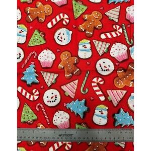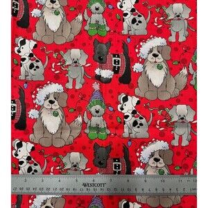 Christmas Holiday Print Fabric 100% Cotton Quilting Dogs Cookies Sweater 2.75 yd