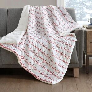 Holiday Printed "FA LA LA" Velvet to Sherpa Throw, 50" x 60"