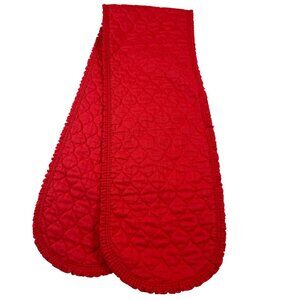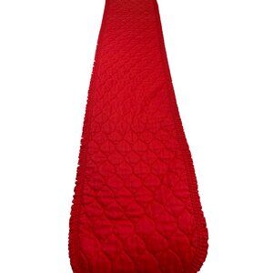 Christmas Holiday Red Quilted Table Runner Reversible Ruffled Edges 68" Vintage