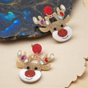 Get into the holiday spirit with these adorable reindeer dangle earrings! β¨ Featuring a glittery reindeer face with a sparkling red nose, jeweled antlers, and festive charm, these statement earrings are a merry must-have. Perfect for Christmas parties, gift exchanges, or simply adding some cheerful sparkle to your outfit. Lightweight yet eye-catching, they bring instant holiday joy wherever you go. ππ